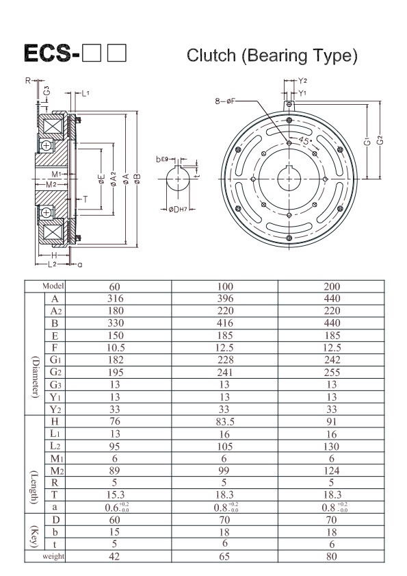 • ECS-100 Electromagnetic Clutch 737.6 ft·lbs (8,850.7 in·lbs) [102.0kg-m] [1,000N-m]