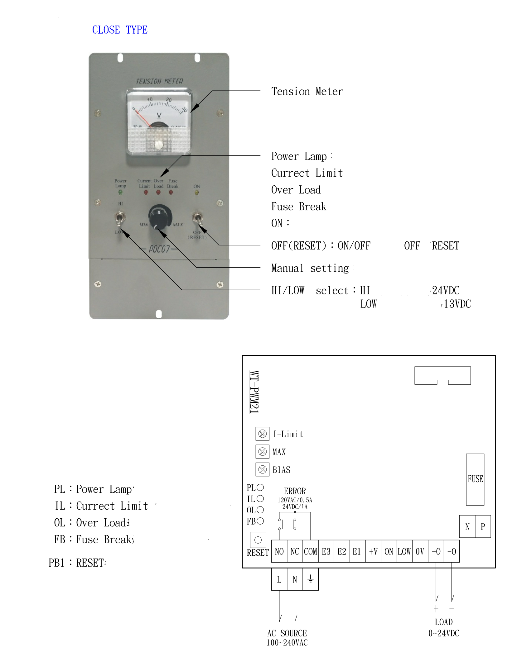 Powder brake controller, 100 - 240 Volts AC, Closed External Mounting (WT-PDC-07-Closed)