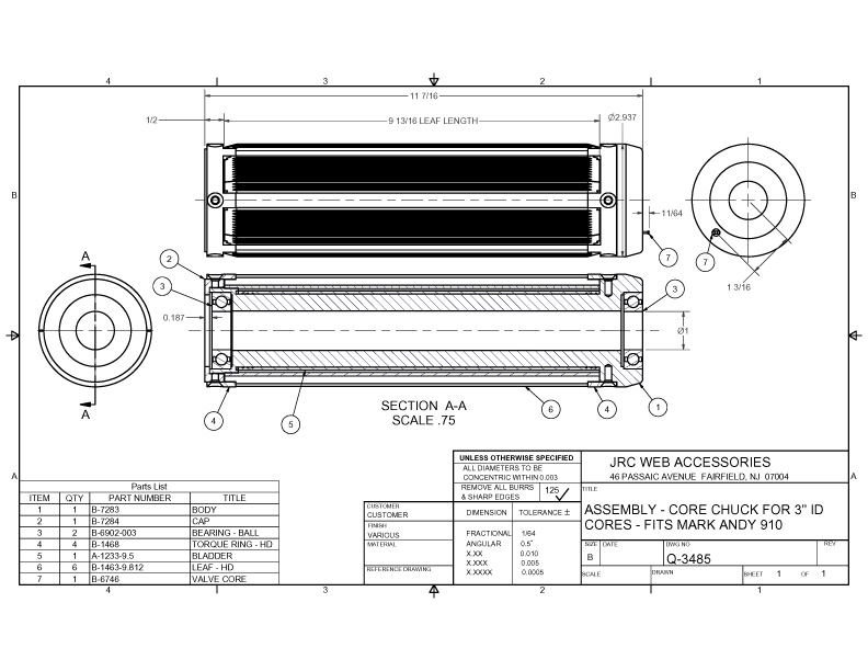 3" Diameter Leaf Type Air Chuck - HD Series (Q-3485) Mark Andy 910